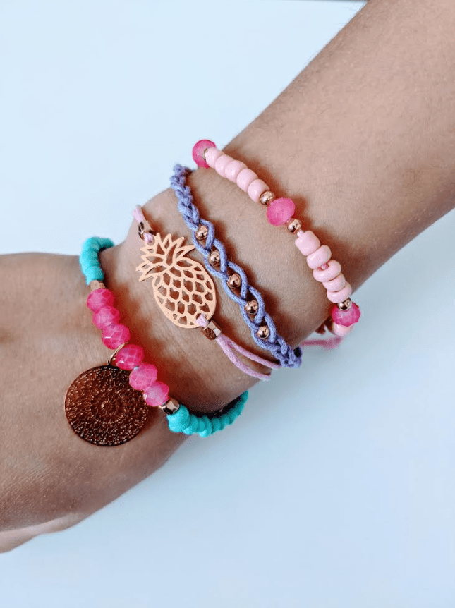 The stack bracelets were the other craft in the kit. We have seen these advertised before and my daughters were excited to make them as they love wearing bracelets. However, with a few of the bracelets, it was a challenge to slide on the beads and even with adult help we couldn’t get may of the beads to slide on the string, no matter what we did. It was rather frustrating for everyone. In the end the bracelets that we did make looked beautiful. Even for a nine year old this craft was quite difficult and required lots of parental help for most steps. With some modifications made on the size of the beads, this would be a very cute craft that a girl can be proud to wear and show off to all her friends.