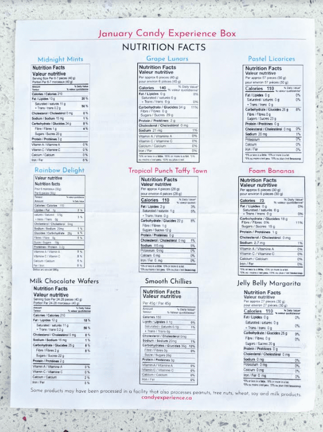 Inside you will also receive a printed list with a detailed description of each candy in your box. You can also see the candies that are included in the other subscription boxes. The Personal Box inclusions are the first 4 candies, the Original Box inclusions are the first 6 candies, and the Large Box (Love of Candy Box) inclusions are all 9 candies listed! I love this environmentally friendly option to use one printout paper for all subscription boxes, however, seeing the Smooth Chillies candy sure made me wish those were in my box. 🙂