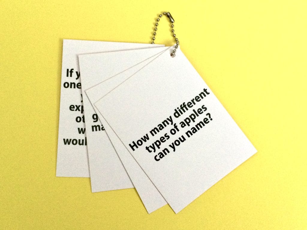 ChitChat conversation starter questions related to the theme of the box. This month they are all about Fall!
