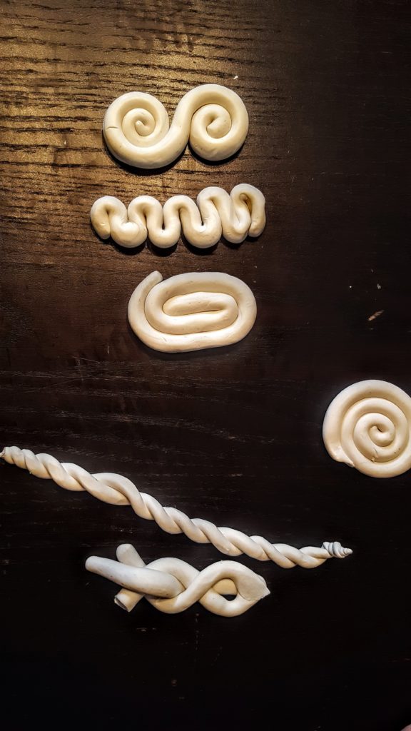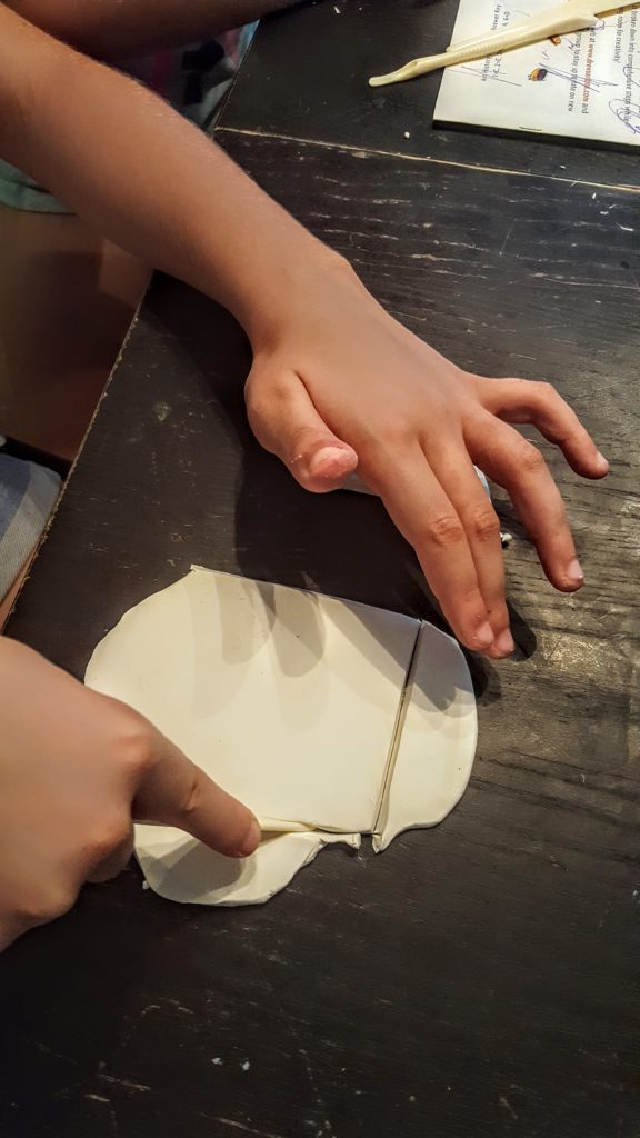 We practice rolling out the clay and also how to find and rid the clay of air pockets