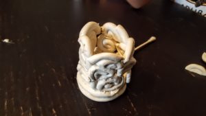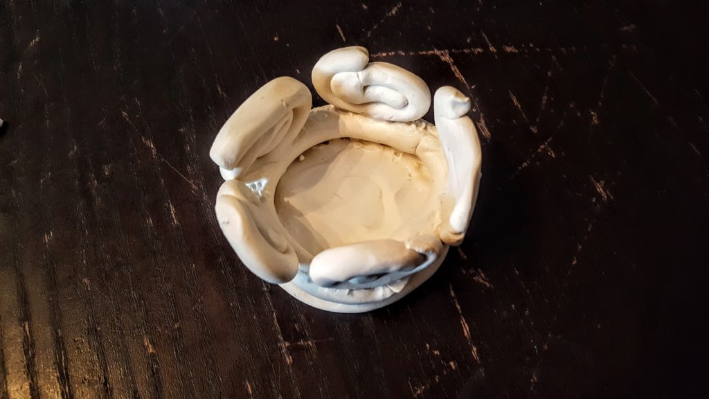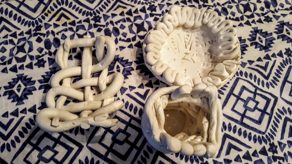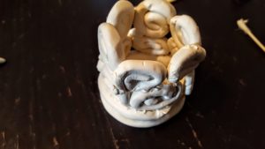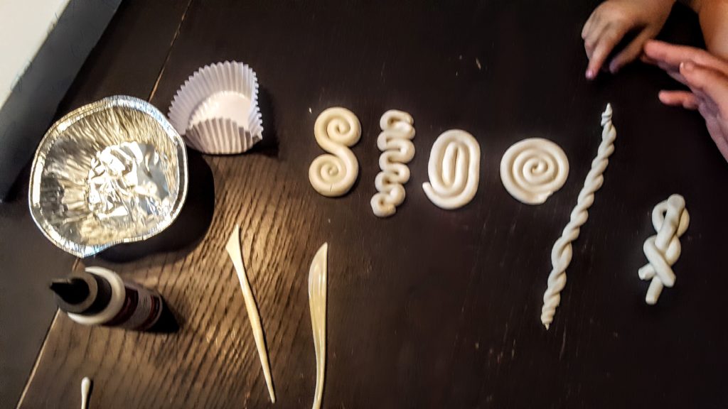 The first video familiarized us with Polymer Clay. We split our clay into thirds (each project uses about a third)
