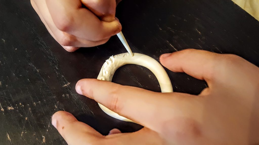 Next we make a donut and score that as well to be the next step in our pencil holder
