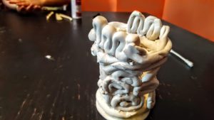 We create a round coil and then flatten out one side to be the base of our pencil holder