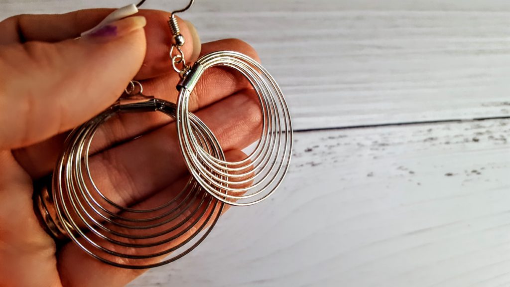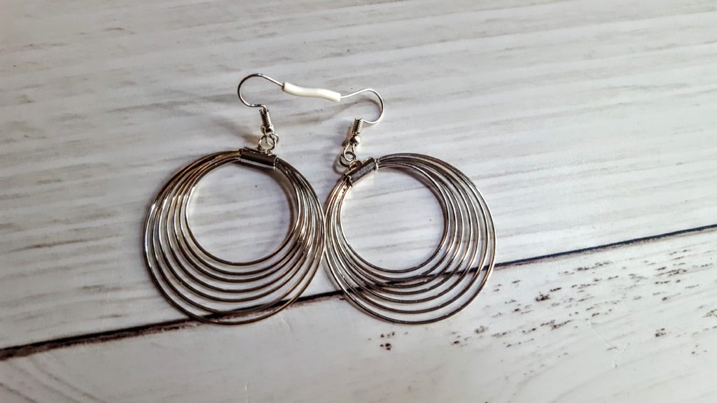 This month’s earrings are these gorgeous silver hoops. They have lots of life and almost have an “optical illusion” effect to them. We love that they’re dynamic without being over the top or “extra”.