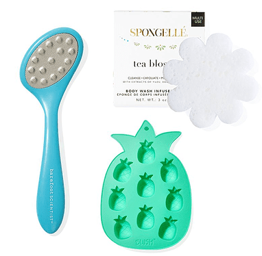 #4 Barefoot Scientist Pedicure File + Blush Pineapple Ice Tray + Spongellé Body Wash Infused Buffer – Tea Blossom – total retail cost $46 USD