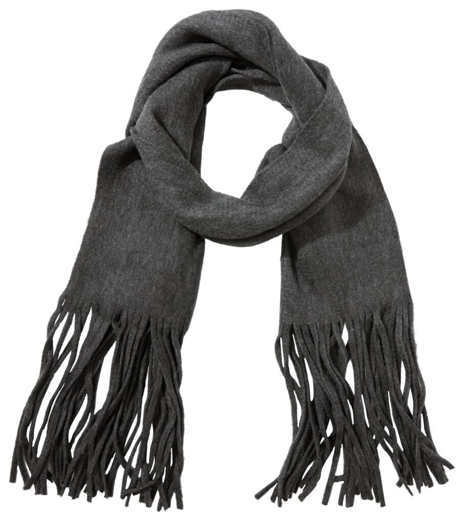 “We’re feeling lucky to stay warm and cozy in this gray wrap-around scarf, which features brushed fringe tassels for a simple yet striking look for winter. This style features tassel ends in a wrap-around silhouette, cut wide for blanket-like layering. This is the perfect accessory to dress up your winter outfit while still remaining warm. It’s soft and big and we love the rich charcoal color. Not to mention the style is unisex and could easily be gifted or shared with a loved one. Everyone needs another great scarf!”