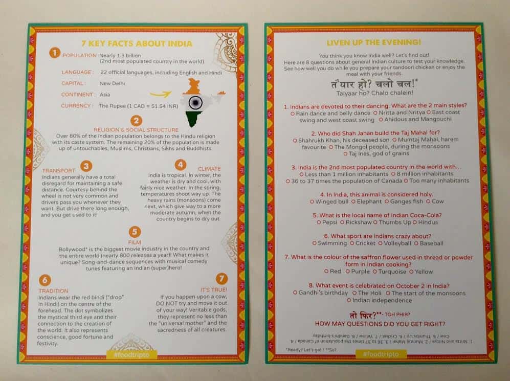 These boxes are so detailed! Each kit comes with a grocery check list, helpful tips for preparing my Indian dinner, and an ingredient fact sheet. They have also included a vegetarian variations on the recipe cards. I love how fun and delicious these boxes are!
