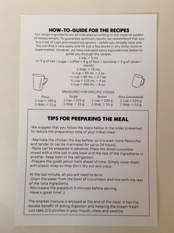 I was told that I will be having a sensory voyage…through India. Additional cards described each item in my box along with a very descriptive recipe card and photo the food I will be making.
