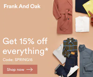Get 15% off everything* at Frank And Oak! Code: SPRING15