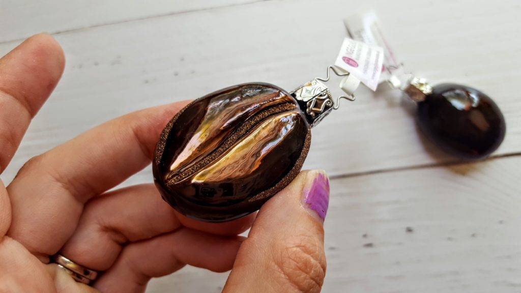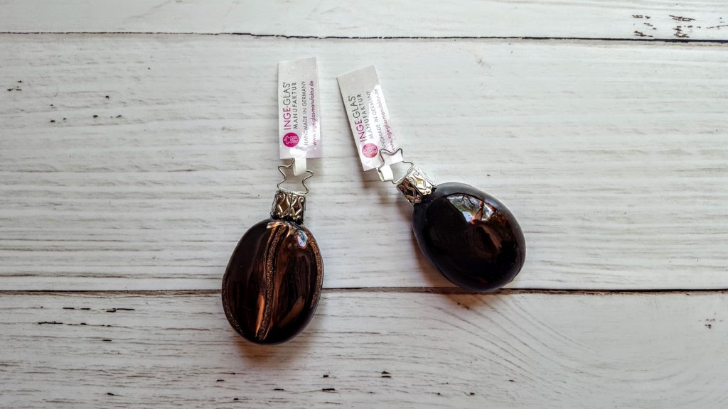 From the oldest Christmas ornament company in the world we have these 2 adorable sweet coffee bean ornaments. We were really impressed with the amount of detail on them and the rich chocolate color.