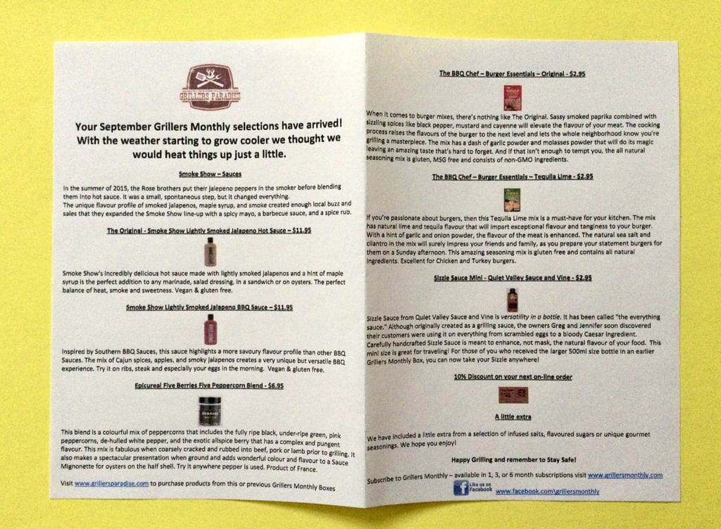 Each Grillers Monthly box comes with an information card outlining each item in the box. This box contained the following: