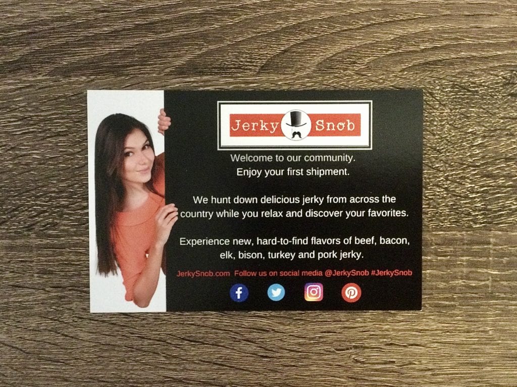 You also get a Jerky Snob sticker with every introductory box.