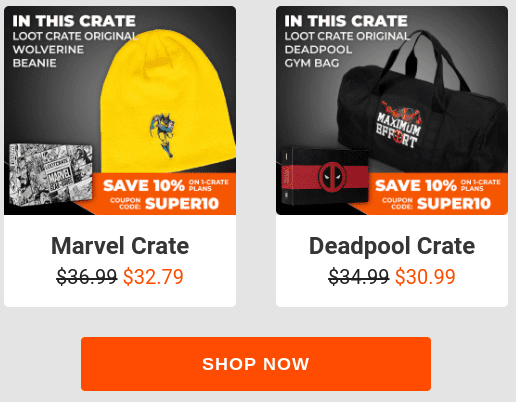 Save 10% off select Marvel Gear and Deadpool Club Merchandise with code SUPER10