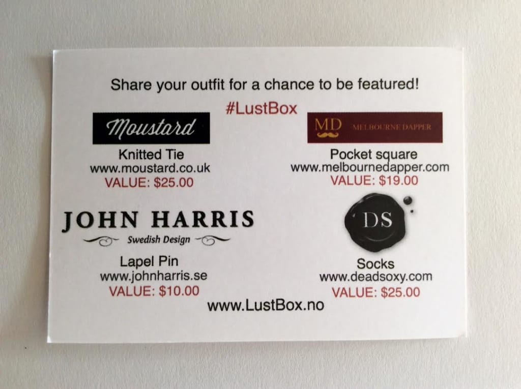 Each Lustbox comes with an information card describing each item, where to purchase it and the retail price.