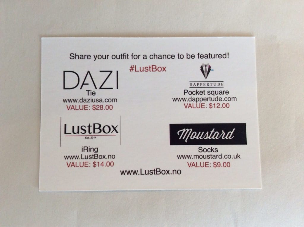 Each Lustbox comes with an information card describing each item, where to purchase it and the retail price.