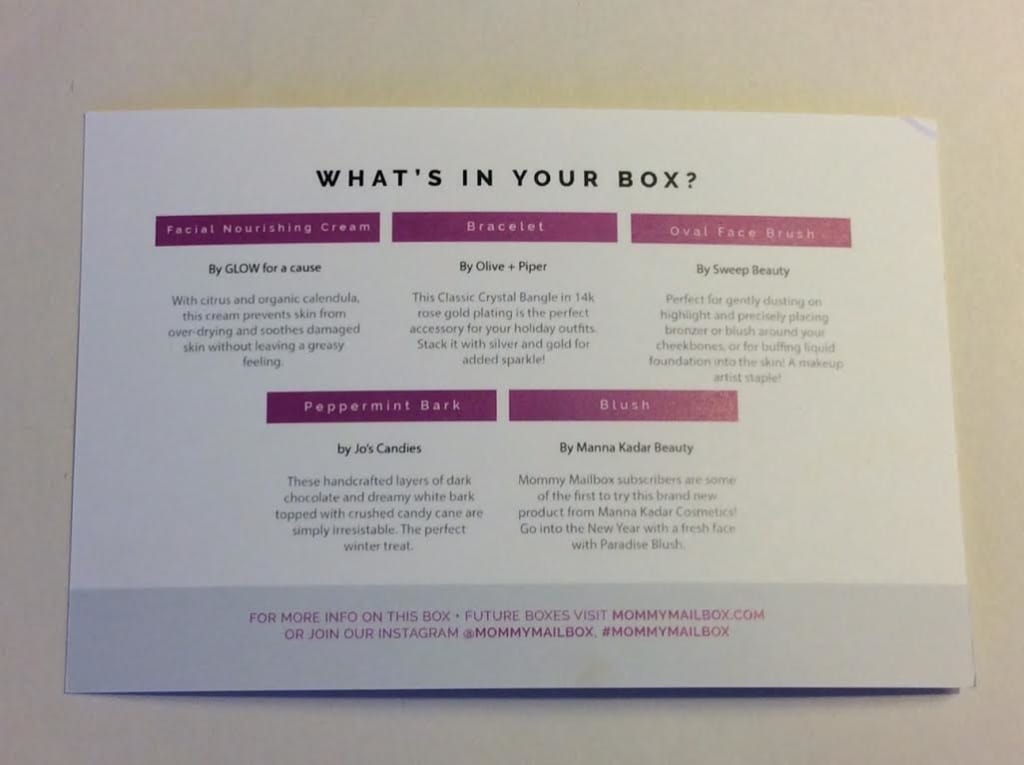 Each Mommy Mailbox comes with an information card telling you about each of the products inside your box.