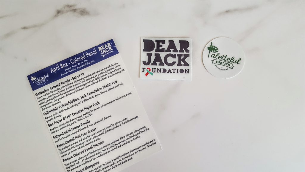Our first glimpse inside the April Paletteful Pack. This month’s box was a collaboration with the Dear Jack Foundation. An organization that helps children and young adults who have been diagnosed with cancer