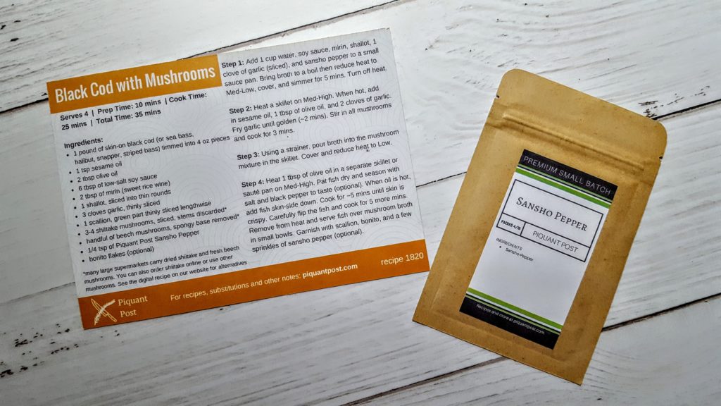 This packet had just one spice in it… the Sansho Pepper. This pepper is from the berry family and has a bright citrus flavor and trust us..a little bit goes a long way!