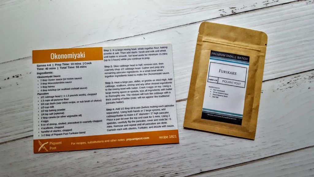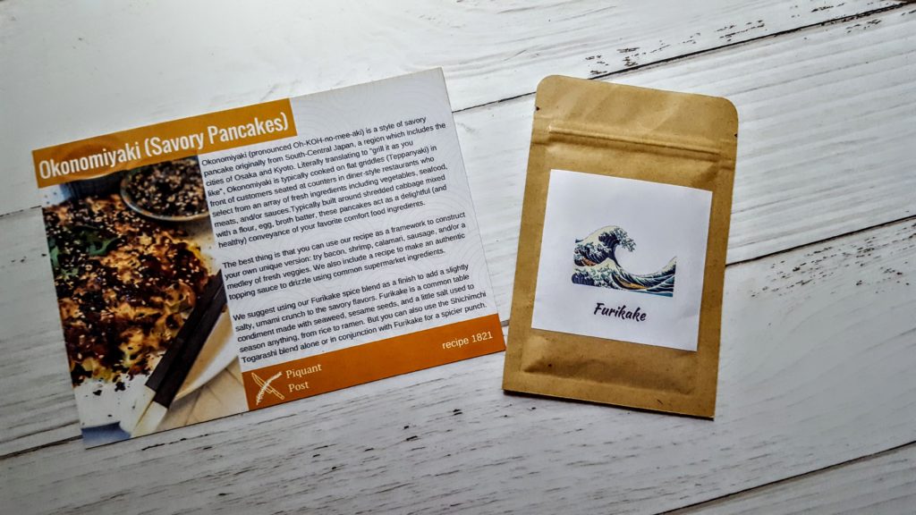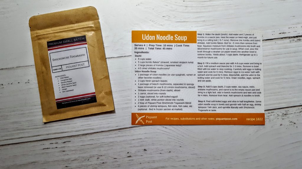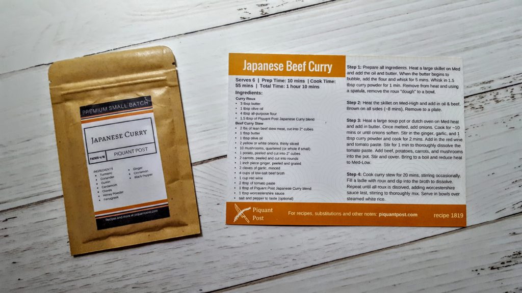 We look for three things in a subscription box; quality, curation and presentation. The Piquant Post is a great way to teach yourself new tricks in the kitchen as well as enhance your own personal flavor profile. The presentation is great, everything arrives perfectly. The quality is amazing. Each spice blend is handcrafted and made with the highest quality spices. Curation is fantastic – we love Japanese food and were waiting for a Japanese spice package since we started receiving this subscription. We finally got our wish and are absolutely thrilled with not only the assortment of flavors and recipes but also the results of our recipe! Great month from Piquant Post!