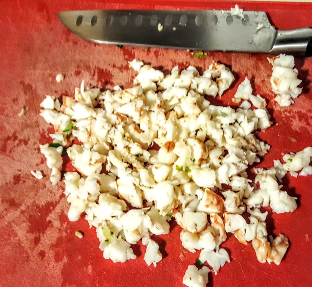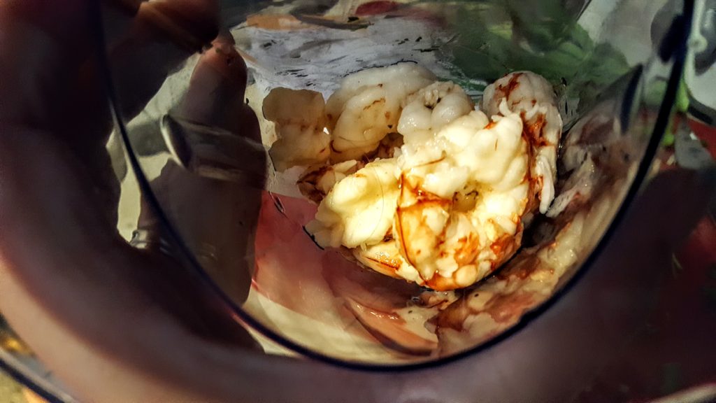 Then you’ll measure out 6 ounces of shrimp. They suggest cooked and peeled but we just don’t roll like that. These are the kind you have to cook but trust us.. that extra time is totally worth the extra flavor!