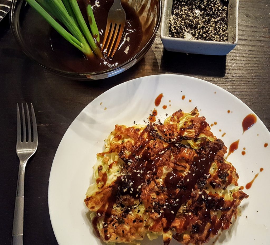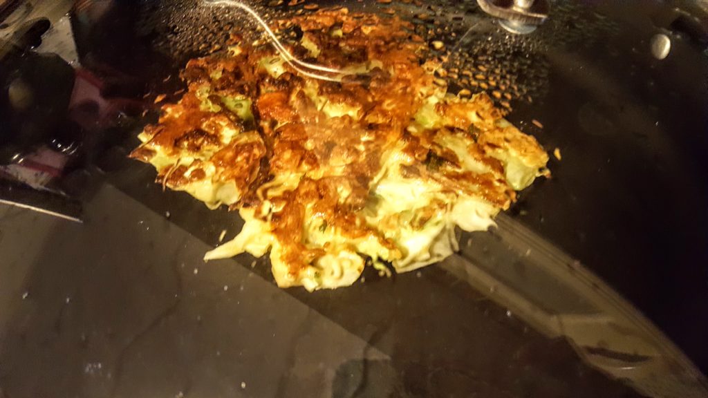 Our final recipe is for Okonomiyaki a savory pancake that is popular in South Central Japan. The literal translation is, “grill it as you like” and when you order these in restaurants you can literally choose to add whatever you’d like to yours! They suggested getting creative but we wanted our first time trying these to be good… so we went with their recipe!