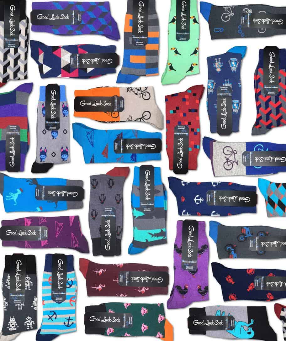 Sock of the Month Club brought to you by Good Luck Sock, is a monthly subscription service for socks! Choose from a 6 or 12-month membership starting at $72. Get it for yourself or gift it to someone else with your own unique message. You only have to pay once and we’ll deliver the socks monthly for the duration of the membership. And to top it off, shipping is FREE anywhere in Canada & United States. Socks are selected at random from over 100 different designs we carry but you can also request a particular color or style that fits your personality.