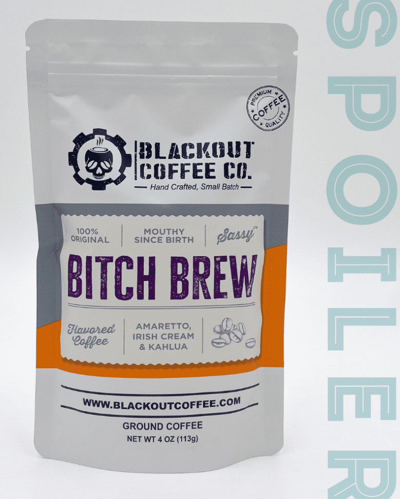 - Bitch Brew from Blackout Coffee Co (SPOILER) – no calories or sugar, 4 oz. bag of grounds, not a bitter coffee; tastes of amaretto, Kahlua and Irish cream
