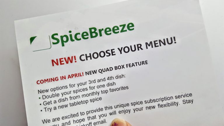 Spice Breeze is a monthly international spice subscription. Choose between the Duo Box that includes 2 recipes and spices for $5.90 monthly or the Quad that includes 4 recipes for $11.85 monthly. Use code MOMSDAY at checkout for $3 off any subscription.