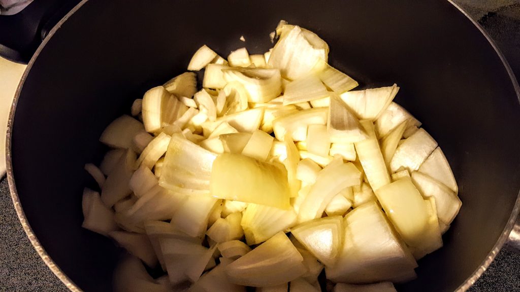 And then our 32 ounces of beef broth and cubed potatoes. Cover and bring to boil – continue to cook for 10 minutes