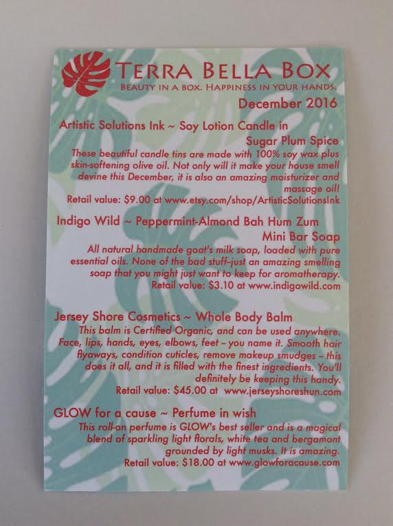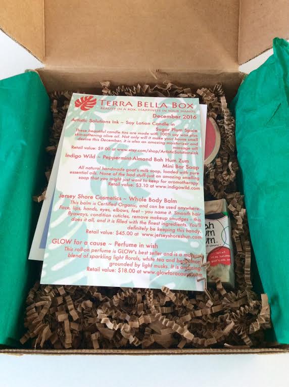 This box was the most wonderful Christmas surprise in my mailbox! I love beauty boxes and I couldn’t wait to see what was inside this Terra Bella Box.