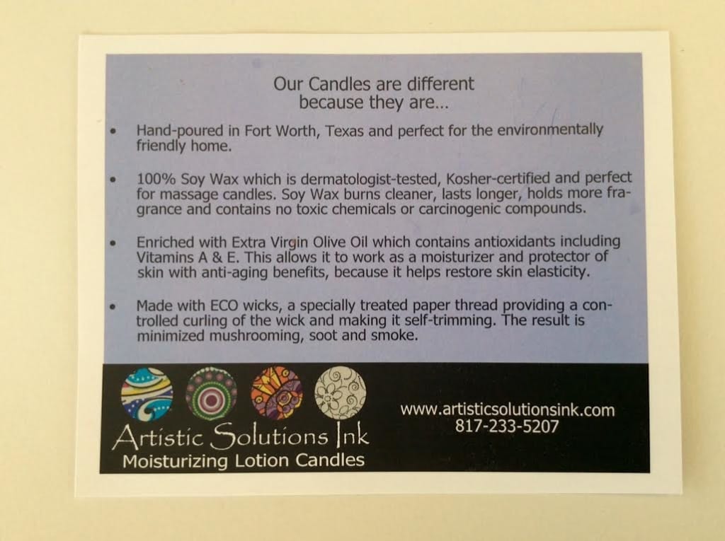 Save 15% off your moisturizing lotion candle at Artistic Solutions Ink, promo code TERRABELLA