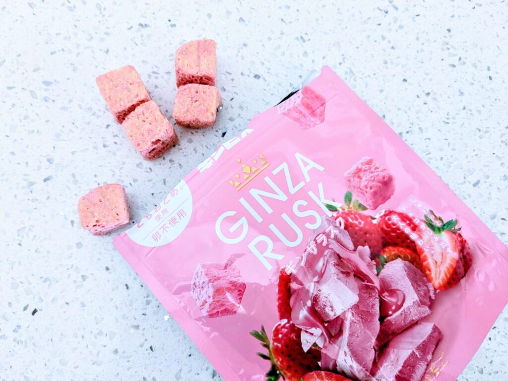 Steady your heart and take a bite of light and airy Ginza Rusk! Its strawberry flavor will keep you coming back for more.