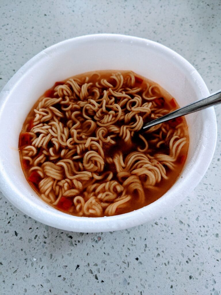 This ramen is perfect for a quick lunch or snack. Mostly my husband ate this ramen as its his favorite! I did manage to snag a few bites. I was expecting it to have some heat, but it was more mild than anticipated. The light umami vegetable seasoning creates just the right amount of flavor.