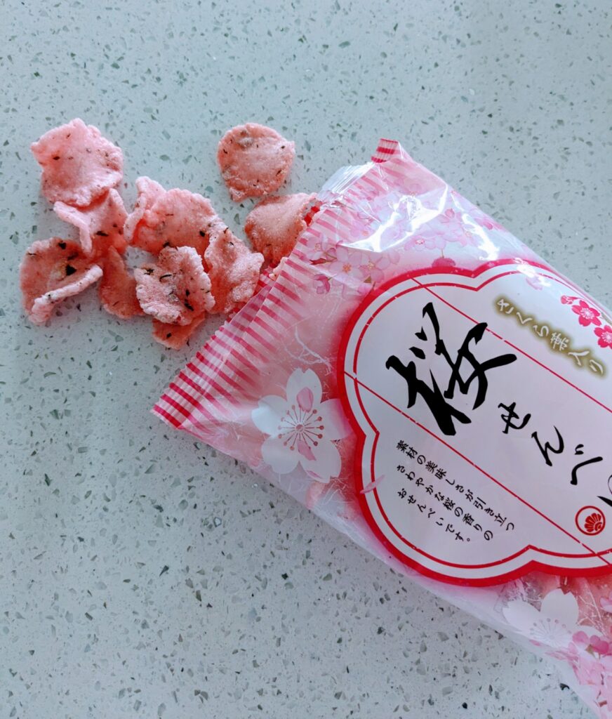 Crunch into these salty snacks with a floral twist- they’re made with real cherry blossom leaves!