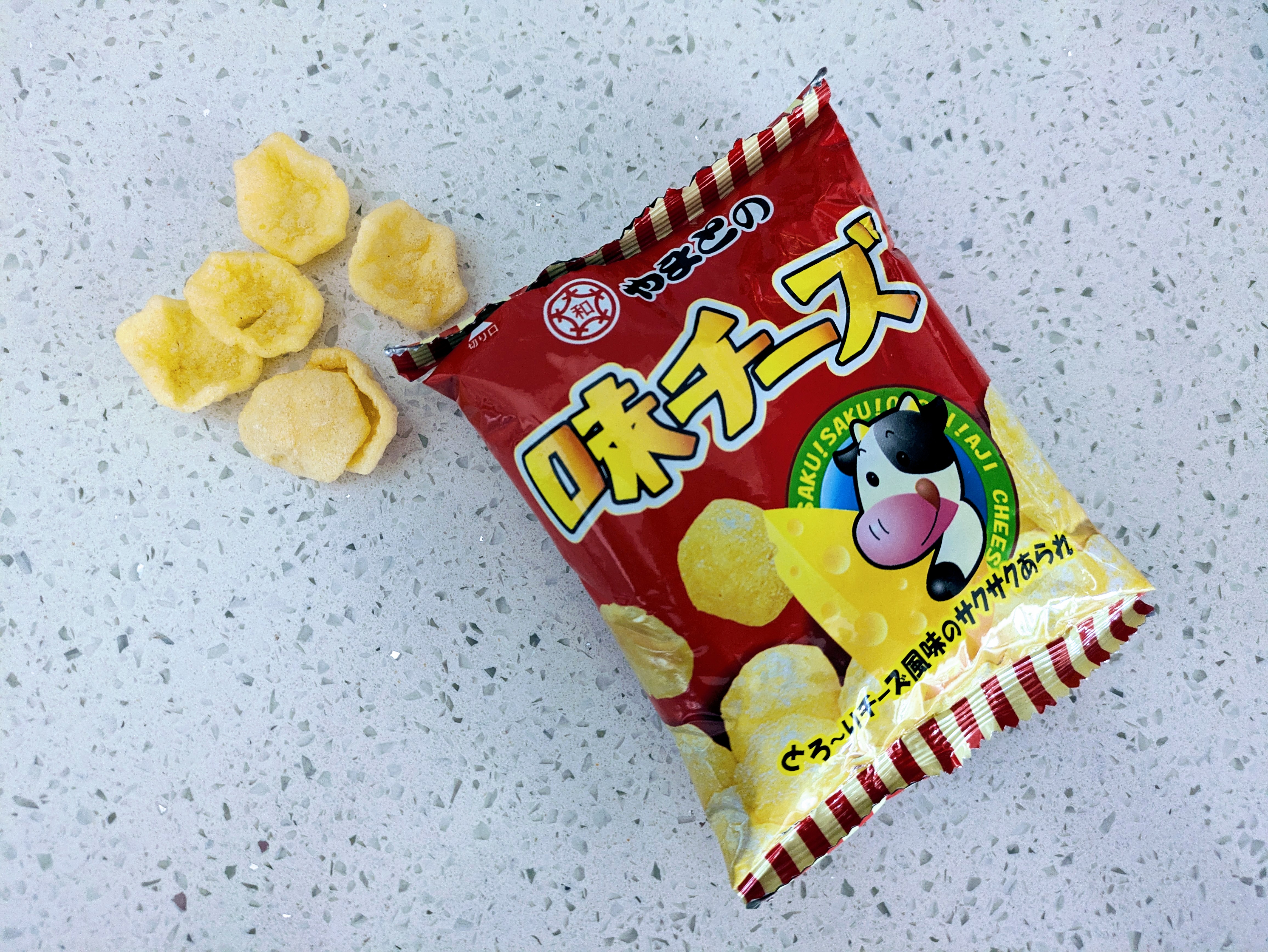 These cheese puffs had a light crunchy texture with a mild cheese flavour, but I would have preferred a stronger cheese taste. They did have a small hint of a fishy taste, yet everyone in the family still found them delicious.