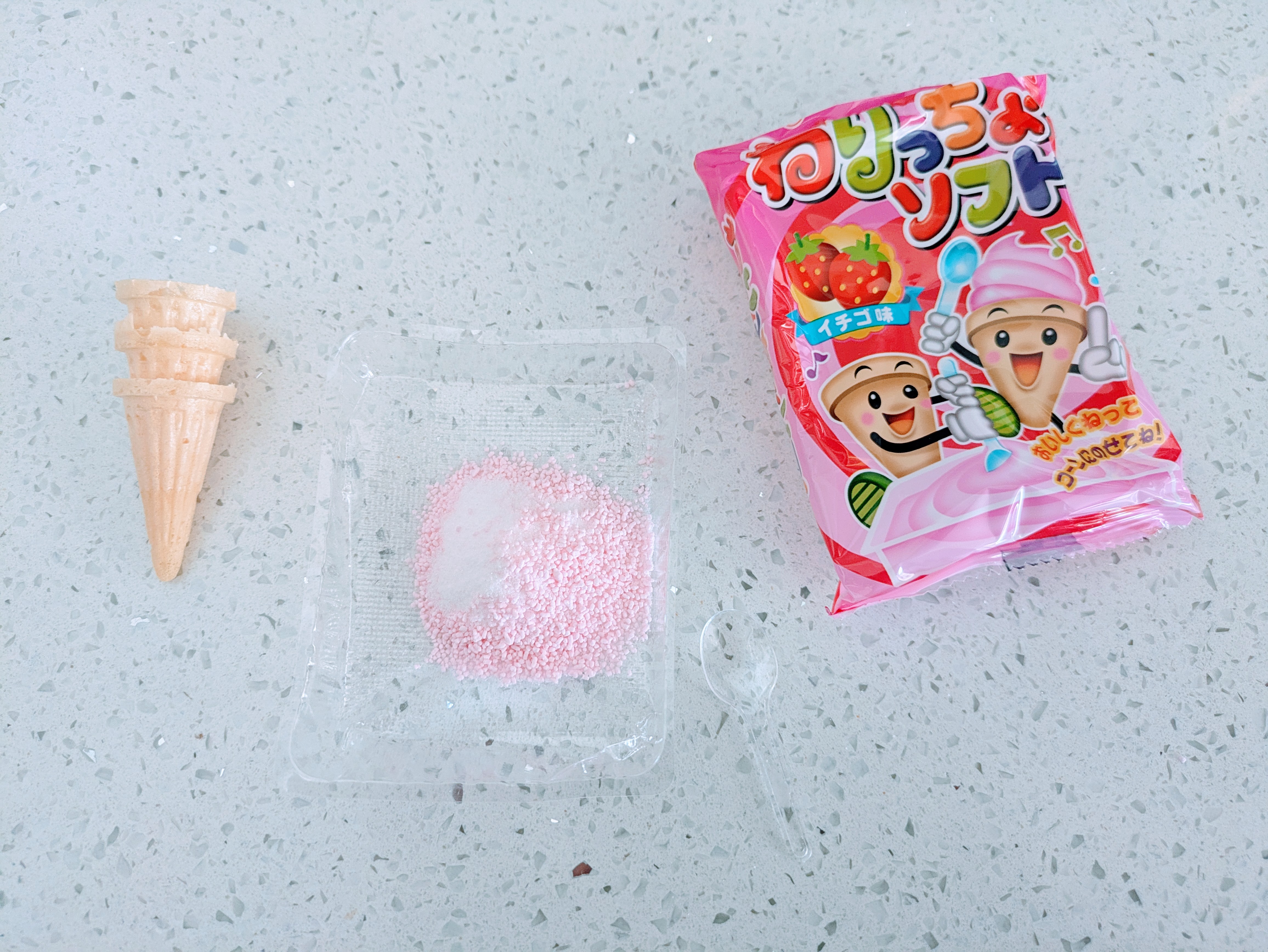 My kids and I were completely in awe of this amazing candy! It was so cool! We got to make out own strawberry candy ‘ice cream’ complete with cone. We have never seen anything like it. It was so easy, just add water to the power, stir, and like magic, you have ‘ice cream’. Not only was it cute and so much fun, but it was delicious too!