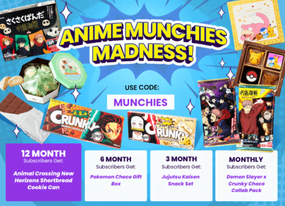 - Sign up using code MUNCHIES to get a Japanese anime snack bonus!