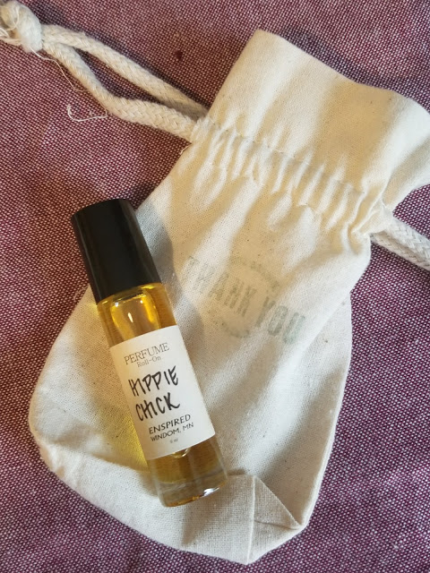 Hippie Chick roll-on perfume by Enspired: This smells wonderful and came in this cute drawstring canvas bag. I like the smell and think this is the perfect size to keep in my purse.