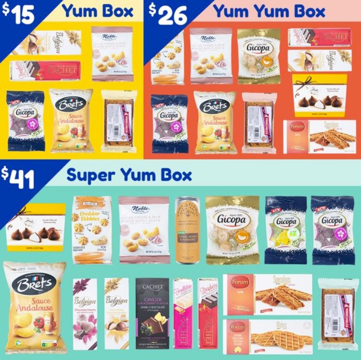• Yum Box – $17.00 USD monthly or $15 per box on a prepaid 1-year plan