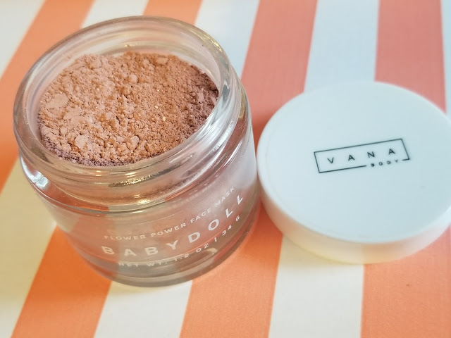 Babydoll Face mask by Vana Body: This is a pink & white clay mask with coconut milk and floral essences. This is meant to combat dryness, irritations and revive dullness. This is a DIY mask that needs to be mixed with water to make a paste. I love using pink clay masks they work very well for my daughter who suffers from acne and for myself. I have not had a chance to use this one but it smells amazing and I am a big fan of natural skin care.