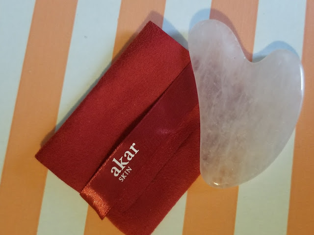 This natural rose quartz massager by Akar Skin is meant to improve circulation, eliminate wrinkles, and slim the face. While this stone is gorgeous I will probably never use it for it’s intended purpose. I do really like it though and it came in an adorable super soft pouch.